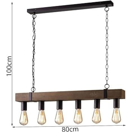 Sospensione lineare in legno 6 luci E27 stile country art TEXAS-S6