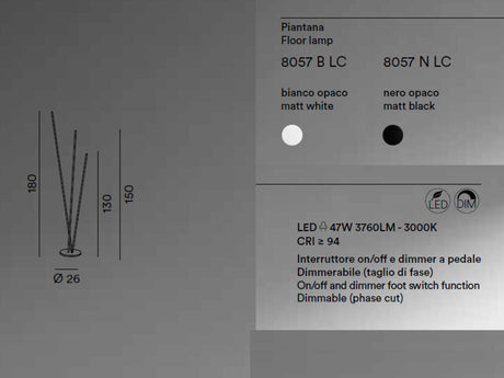 Lampada da terra formata da 3 steli in metallo led art TWINS 8056