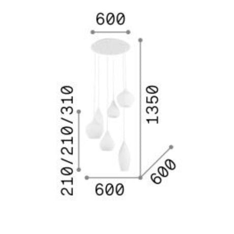 Lampadario 8 luci in vetro vari colori art VILLA/S8